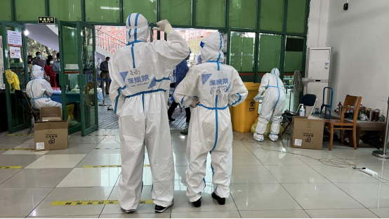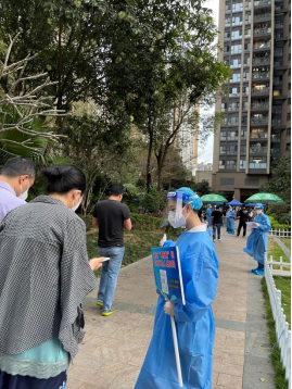 院团委副书记高尚同志积极响应团市委号召,发挥团干的带头作用,主动报名了所在街道的志愿服务工作。有天天气特别热,加之厚重的防护服穿在身上特别闷,工作三小时后已经精疲力尽,这时有位排队的老人看见他后背上的贴纸,并一字一句念了出来:“深规院 为城市,我们可以做更多”,听到这句solgan,仿佛给了他很大的动力,让他意识到代表的是深规院,是一个又一个为城市发展建设努力的深规人,于是又有力量坚持下去了。在负责核酸检测扫码过程中,他体会到指导老人操作时需要耐心、看到孩子们当“队长”后和家长炫耀时的可爱、得到在帮助他人之后一句真诚的谢谢......这座城市的活力与温暖,让他相信疫情结束的那一天不会太远到来。