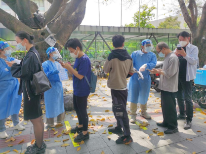 自2月28日起,城市设计研究所每天有两名员工轮流前往社区参加防疫志愿队,提供力所能及的支持,共同筑牢社区疫情防线。第七党支部城市设计研究所党小组的李腊、杨博文等同志先后前往桃源街道峰景社区龙珠军苑、梅林街道新阁社区,协助社区人员进行核酸检测扫码及查验健康码工作。