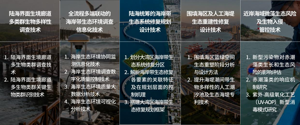 该项目根据粤港澳大湾区海岸带开发利用特征,基于海岸带生态保护修复的系统化工作要求,建立了一套集成生物多样性调查与评估、数据平台构建、规划设计方案制定、风险管控、效果评估为一体的海岸带生态系统调查评估及修复关键技术,该项技术授权了10项专利,其中8项发明专利;4项软著,3本专著,10篇论文。该项技术成果已应用于粤港澳大湾区多个生态修复项目,获国内外科学技术奖及规划设计奖项8项,推动海岸带调查从单一监测向"评估-修复-管控"全链条技术升级,取得了显著的社会效益和经济效益。