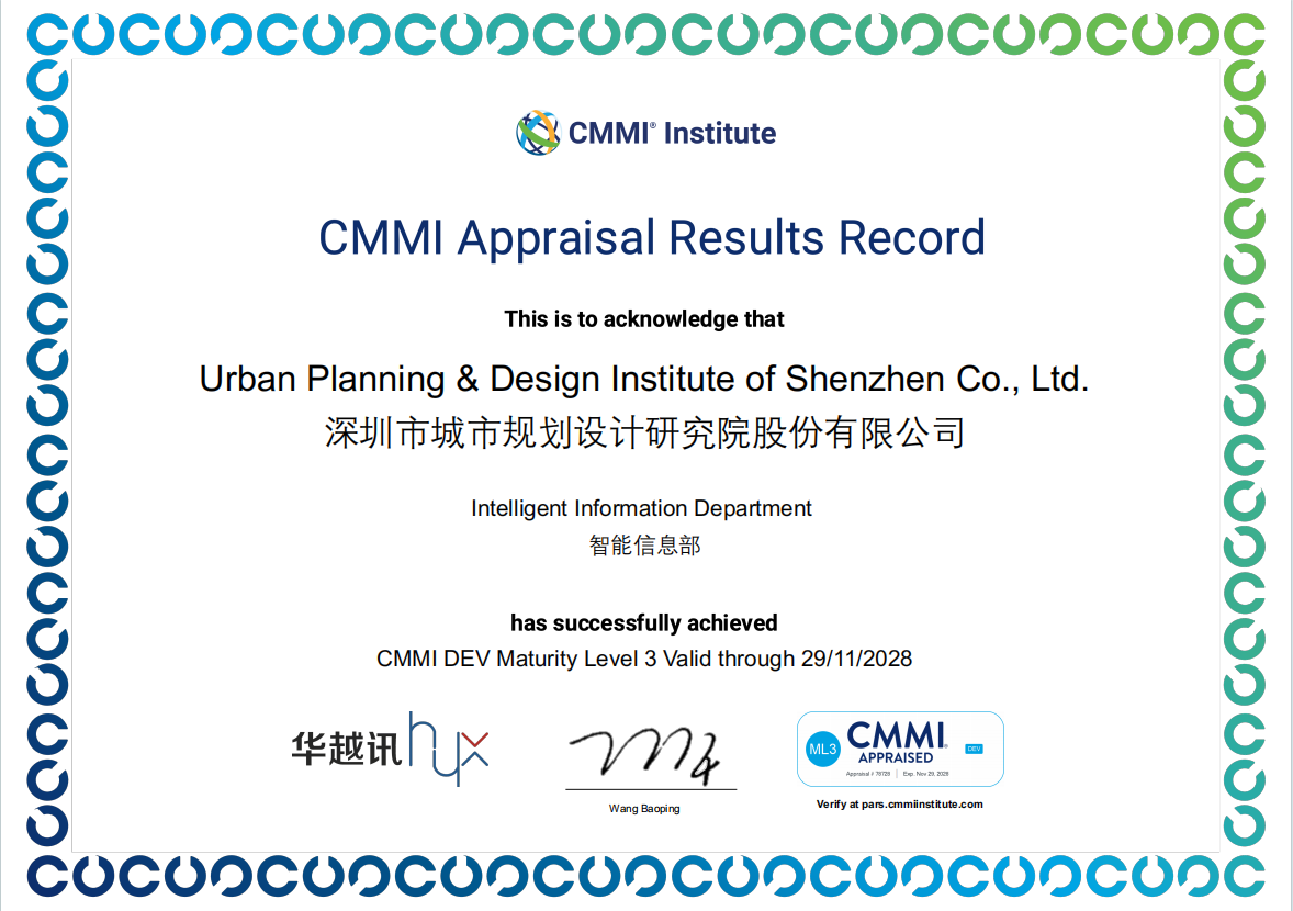 作为一家城市规划领域的传统企业,深规院始终将科技创新视为企业发展的核心驱动力。从海量城市数据的深度挖掘与科学分析,到构建高精度、高仿真的数字孪生城市,再到基于CIM平台的智能化城市设计,以及BIM技术在城市建设全生命周期的深度应用,直至将AI技术深度融入城市规划与管理的核心环节,深规院正逐步构建起一套完整的数智化城市规划与设计体系。未来,深规院将持续发挥在城市规划领域的专业优势,与强大的数智化技术能力深度融合,以CMMI3级认证为新起点,继续致力于为城市发展提供强有力的数字化支撑,助力深圳乃至全国的城市建设迈向更加智慧、高效、可持续的未来。